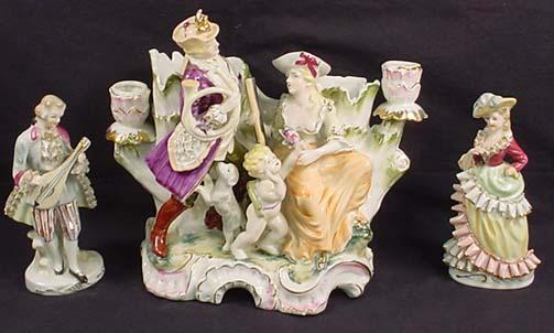 LOT OF 3 VINTAGE FIGURINES - UNMARKED - 1 is a Candle / Flower Holder