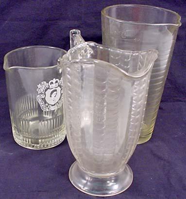 LOT OF 3 VINTAGE GLASS PITCHERS - Incl. Measuring Glass, 1953 Coronation Souvenir, More!