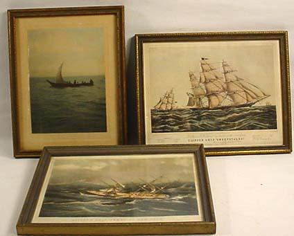 LOT OF 3 VINTAGE SHIP PRINTS - FRAMED - Incl. Clipper Ship. Approx. 9" x 7" each