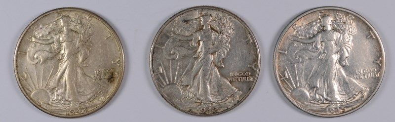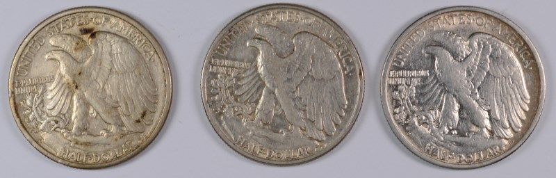 LOT OF ( 3 ) WALKING LIBERTY HALF DOLLAR, XF/AU