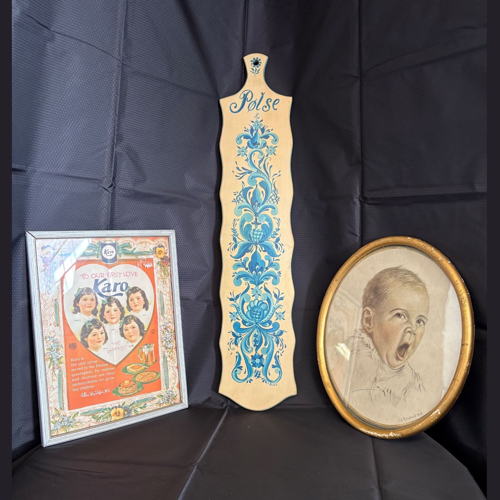 Karo ad features Dionne quintuplets, oval image SIGNED 1906 - 26.5 in.