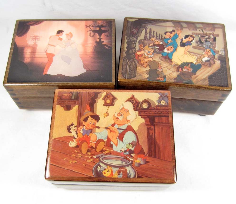 When you Wish Upon a Star, Some Day my Prince will Come and So this is Love. All have Swiss Musical Movement. Snow White music box is over-wound.
