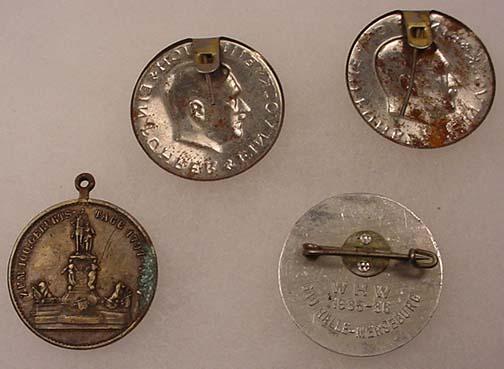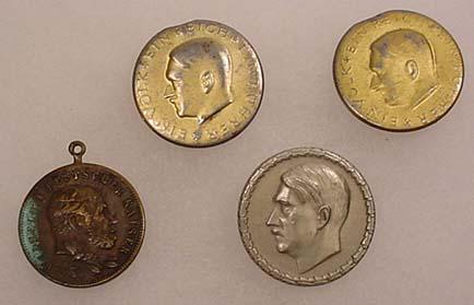 LOT OF 3 WW2 GERMAN NAZI HITLER TINNIES AND A KAISER PENDANT