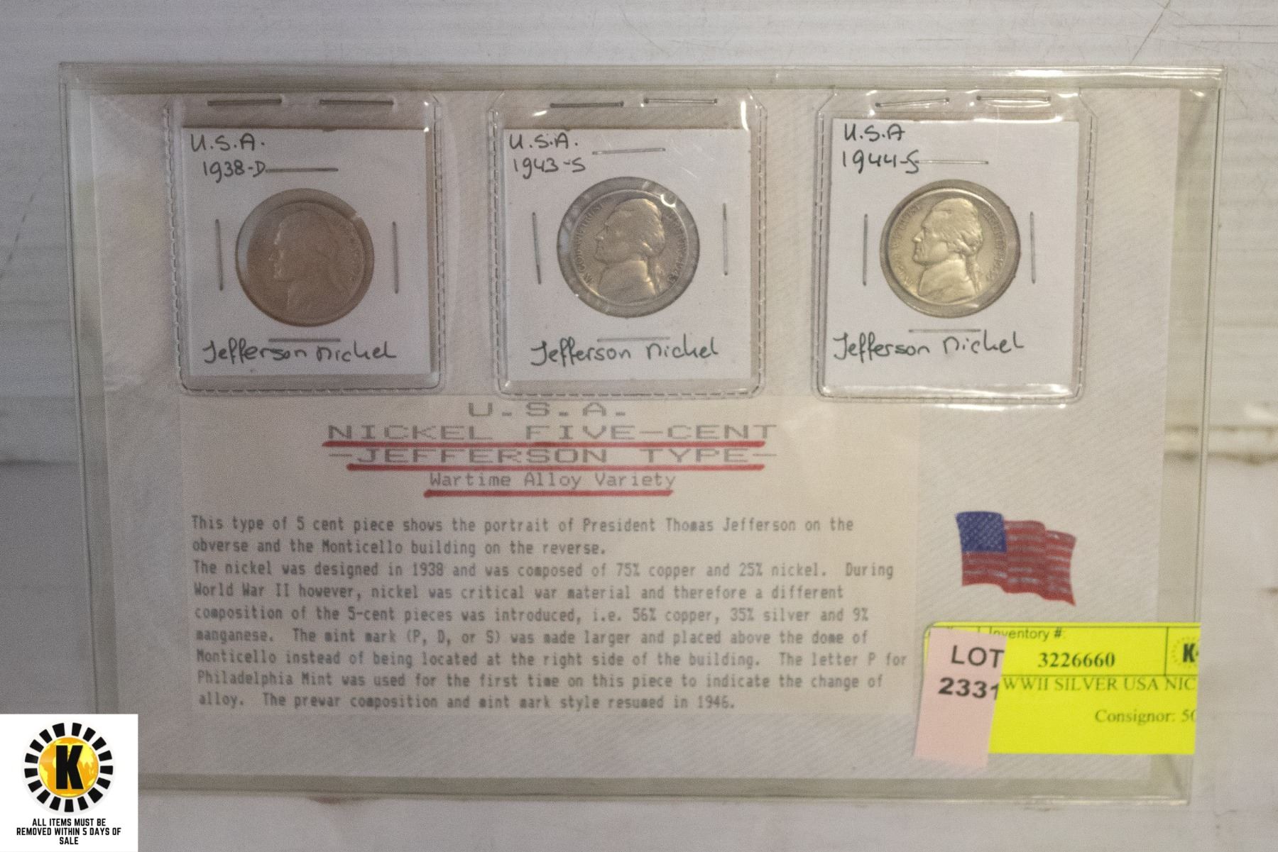 LOT OF 3 WWII SILVER USA NICKELS SET