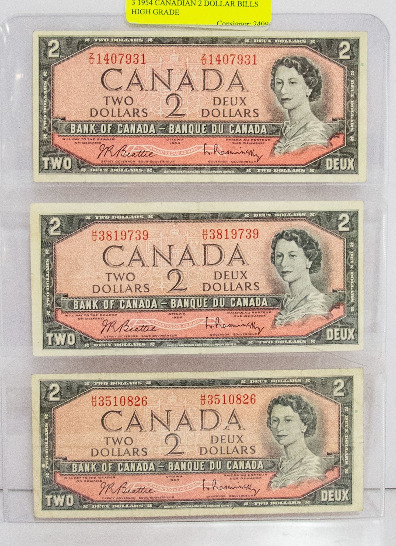 LOT OF 3 X 1954 CANADIAN $2 BILLS