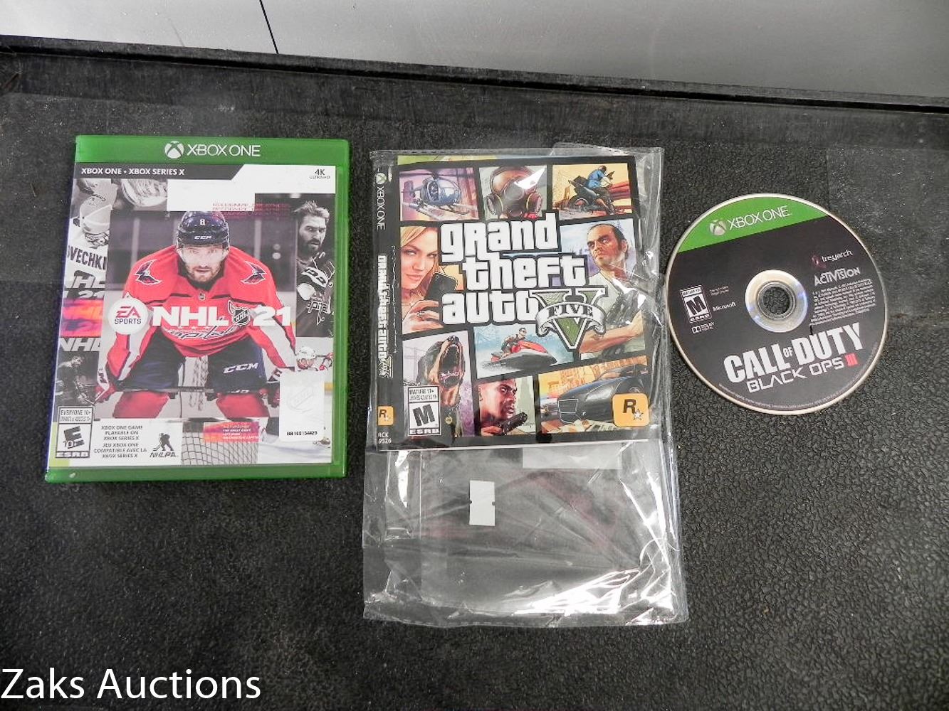LOT OF 3 XBOX ONE GAMES. NHL 21, GRAND THEFT AUTO 5, CALL OF DUTY BLACK OPS