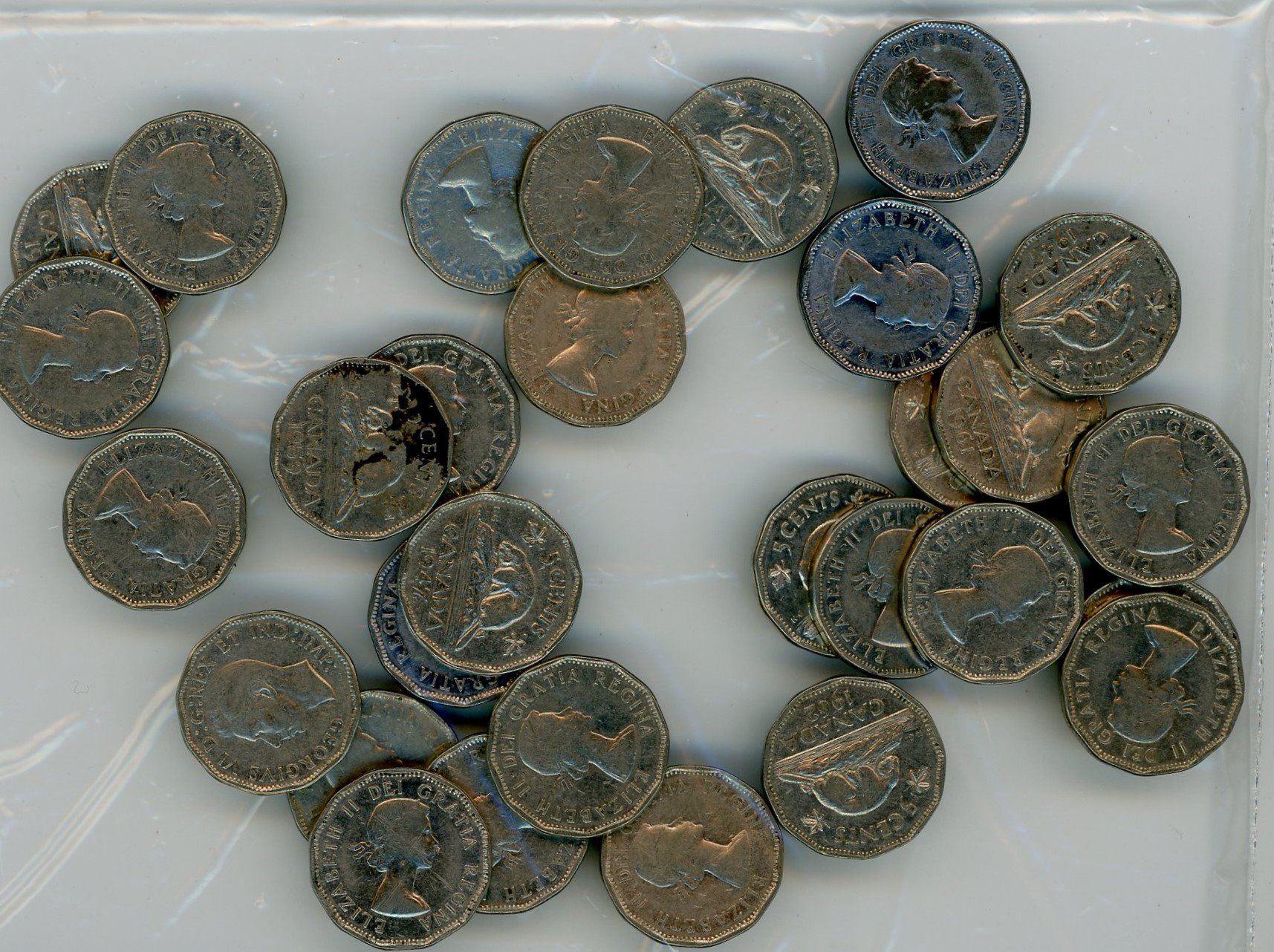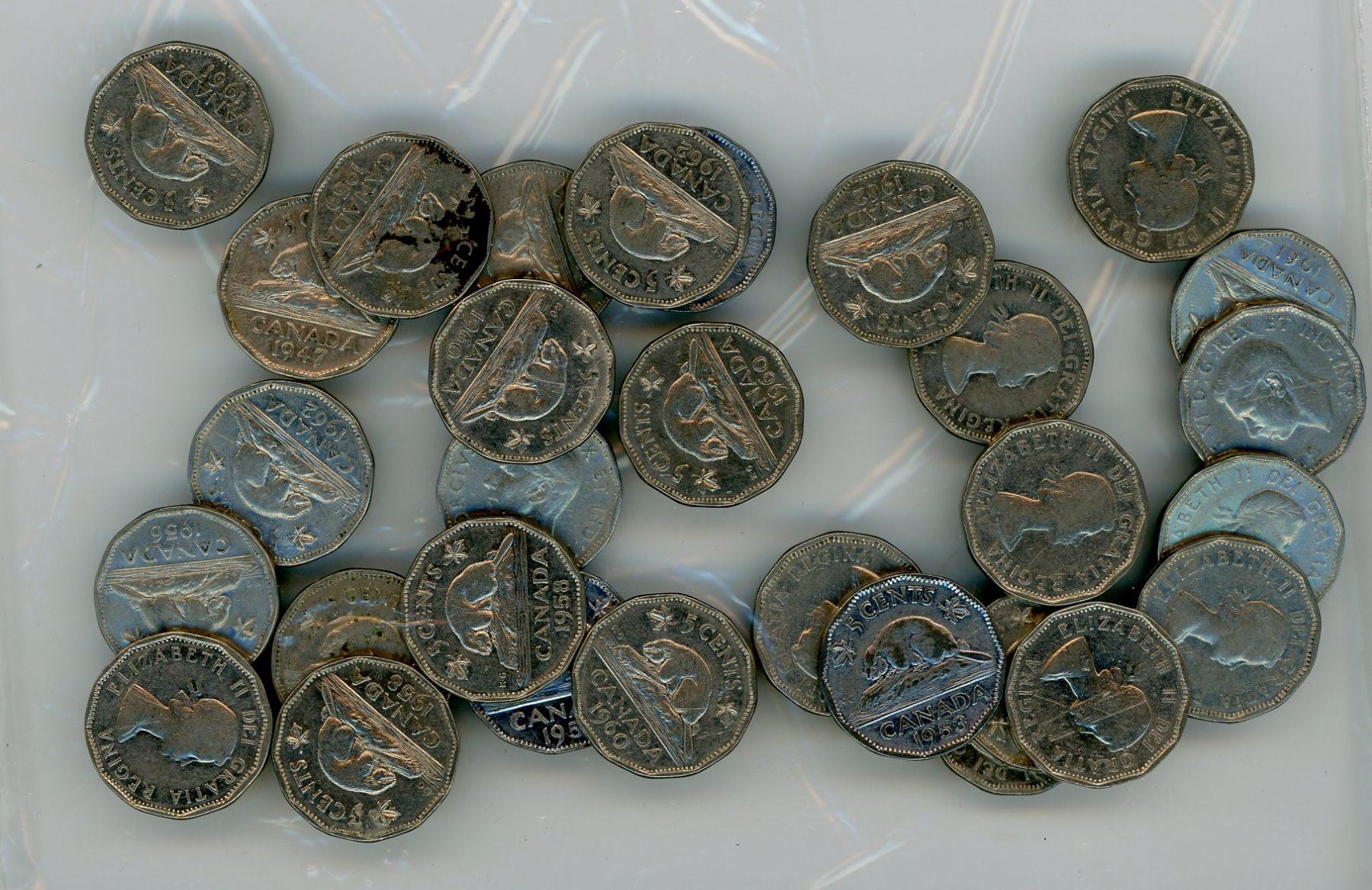 LOT OF 30-FIVE CENT COINS (ALL 12 SIDED) *VARIOUS DATES* (CANADIAN)