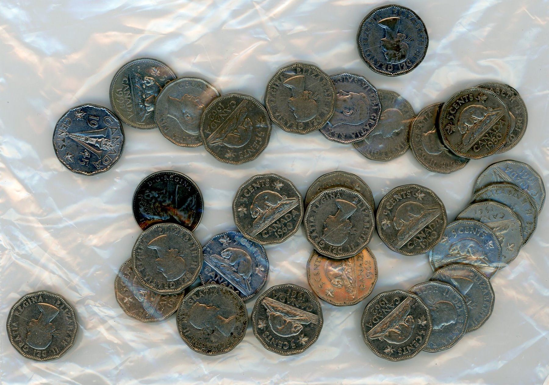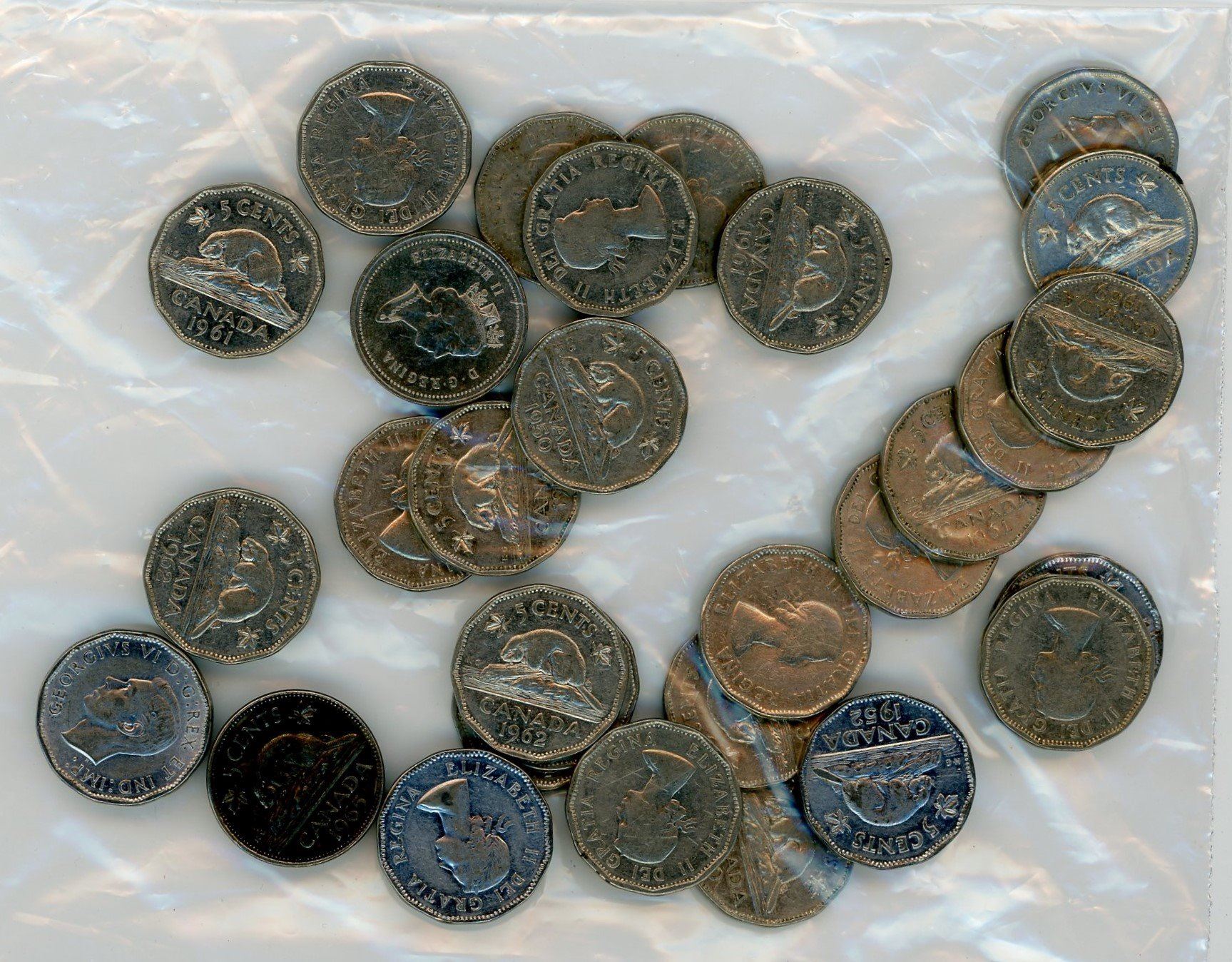 LOT OF 30-FIVE CENT COINS (ALL 12 SIDED) *VARIOUS DATES* (CANADIAN)