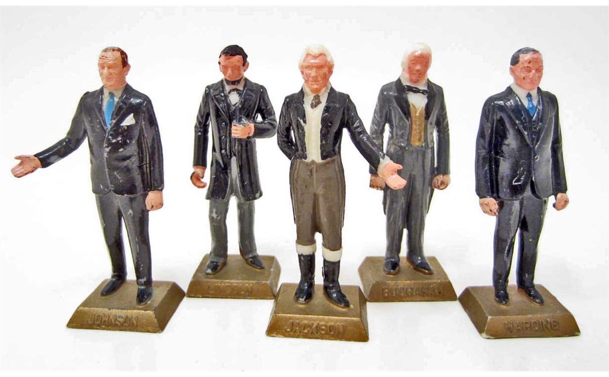 Near complete set from George Washington (1st) to Lyndon Johnson (36th). Missing #s 6, 20 and 35. Each measures approx 2-3/4" tall