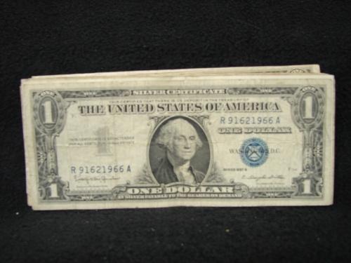 LOT OF 37 U.S. $1 SILVER CERTIFICATES. Consists of (1) 1935-A, (2) 1935-C, (3) 1935-D, (3) 1935-E, (2) 1935-F, (3) 1935-G, (4) 1957, (11) 1957-A, and (8) 1957-B.