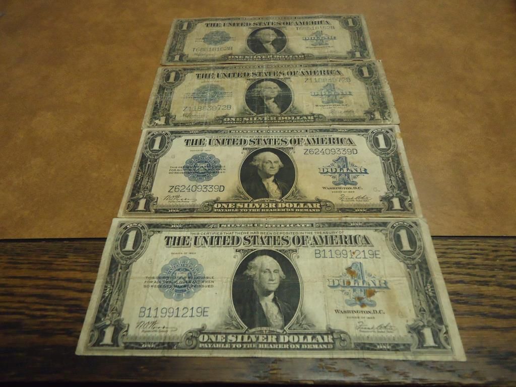LOT OF 4-1923 LARGE SIZE $1 SILVER CERTIFICATES