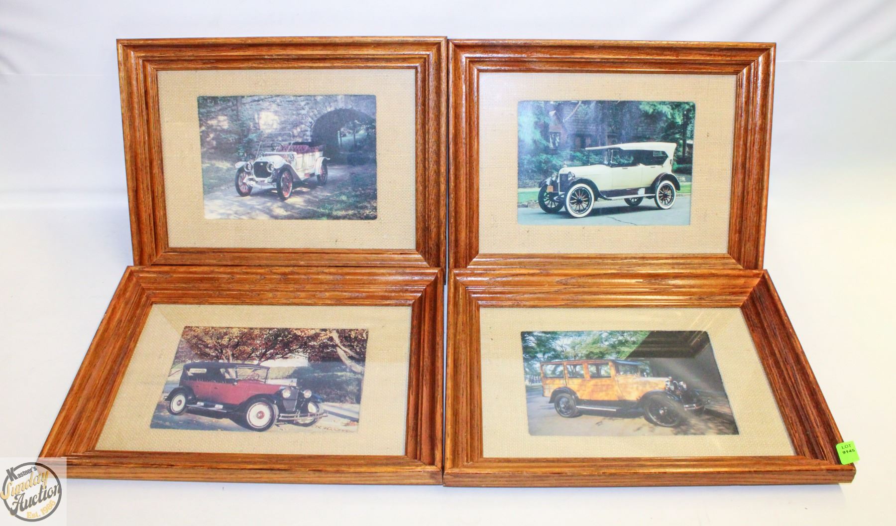 LOT OF 4 1930'S CAR FRAMED PRINTS 16.5" X 12.5"
