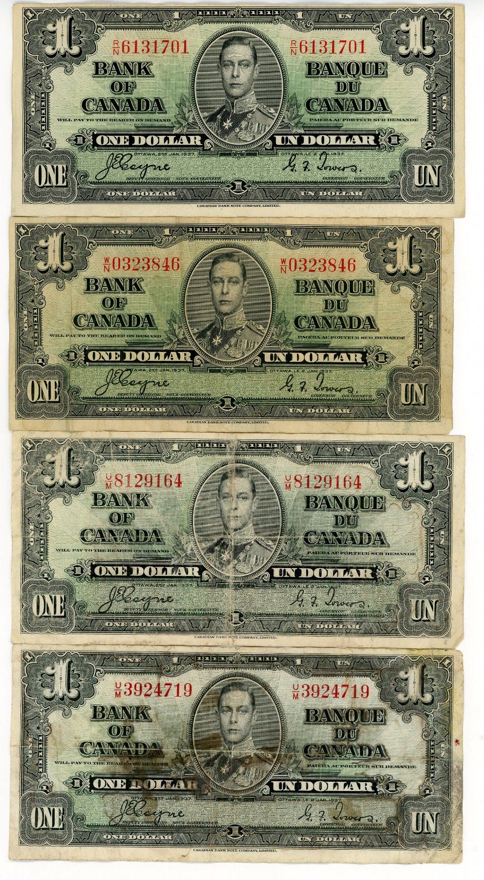 LOT OF 4 1937 $1 NOTES (ALL COYNE-TOWERS SIGNATURES)