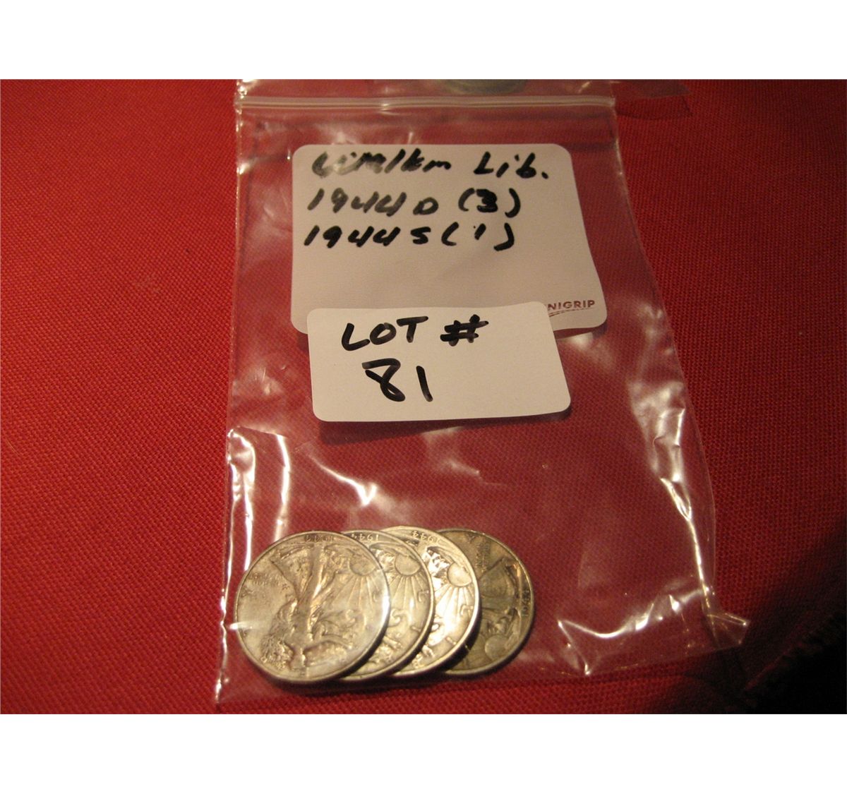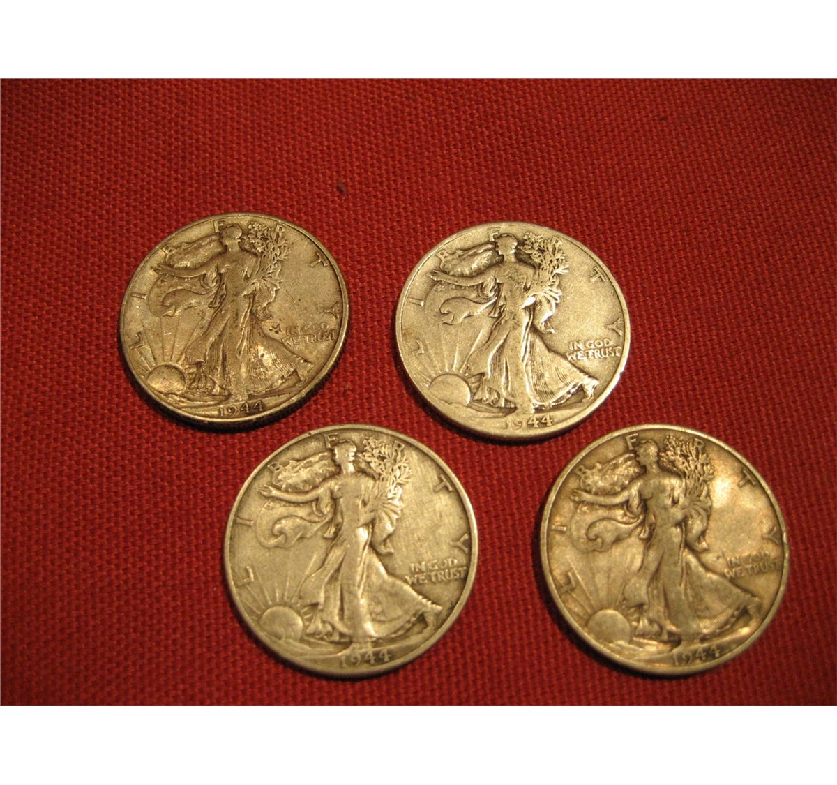 DATES: (3)1944d, (1)1944s WALKING SILVER HALF DOLLARS 90% SILVER