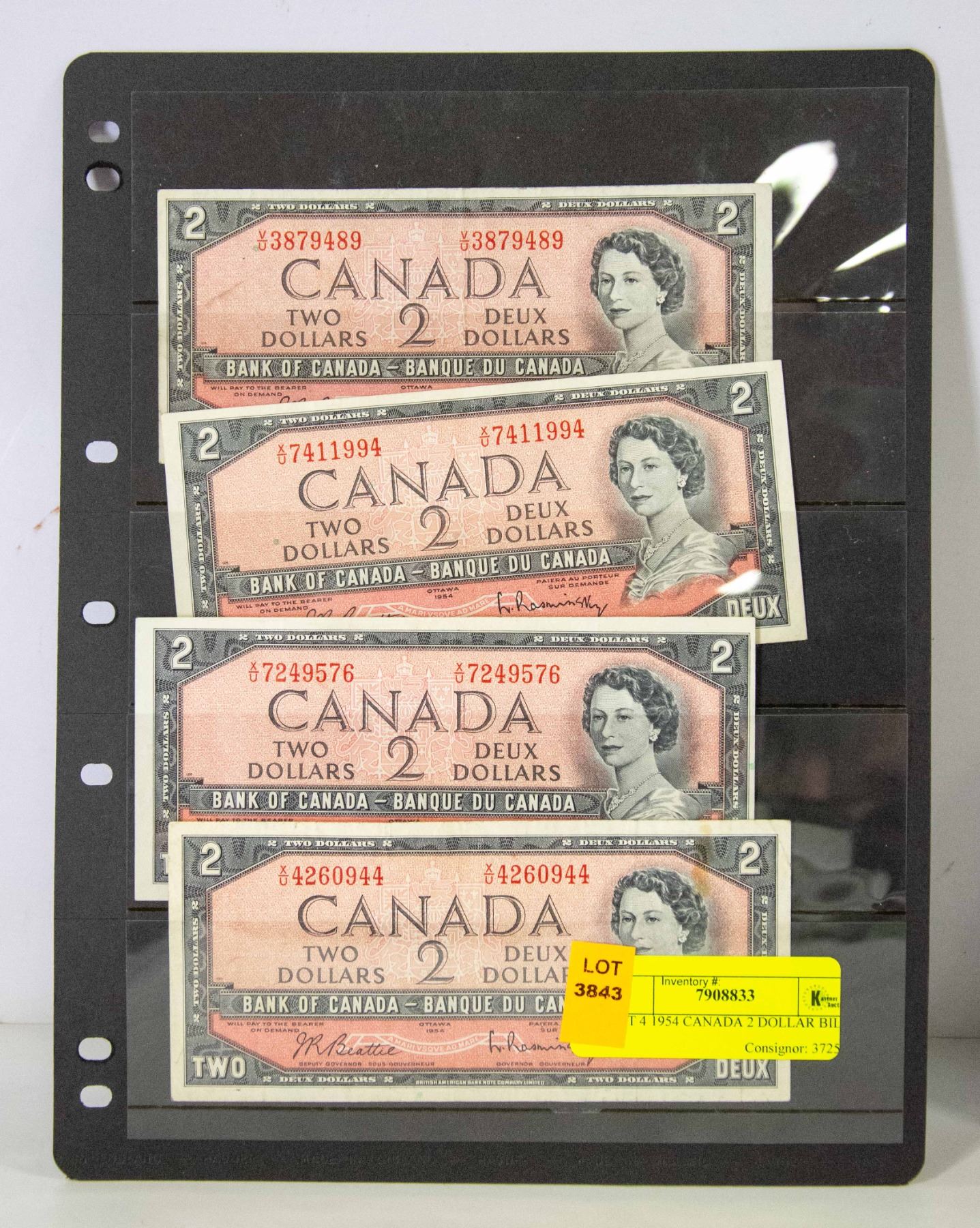 LOT OF 4 1954 CANADA 2 DOLLAR BILLS