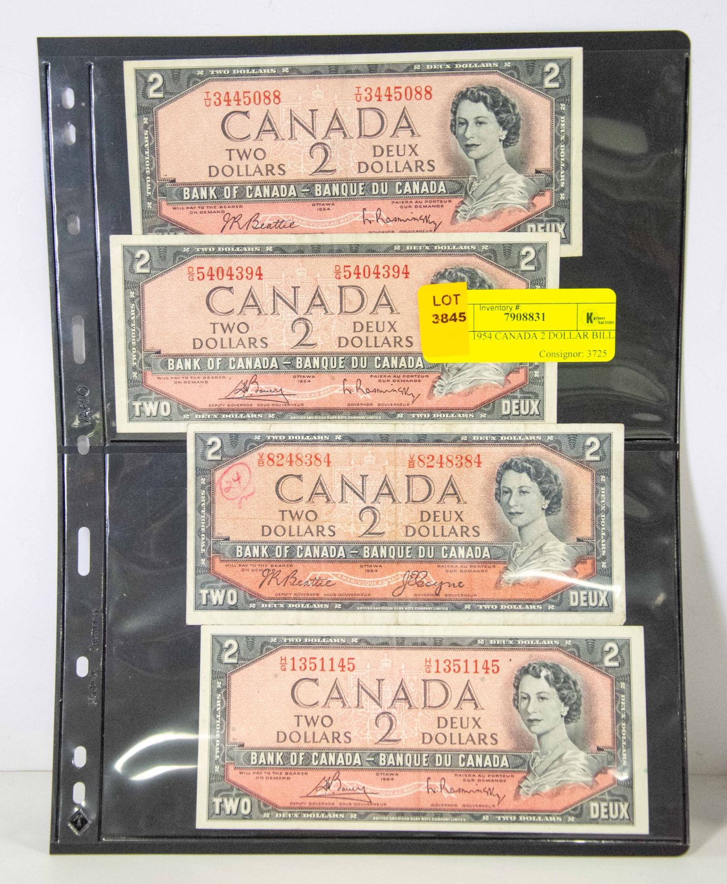 LOT OF 4 1954 CANADA 2 DOLLAR BILLS