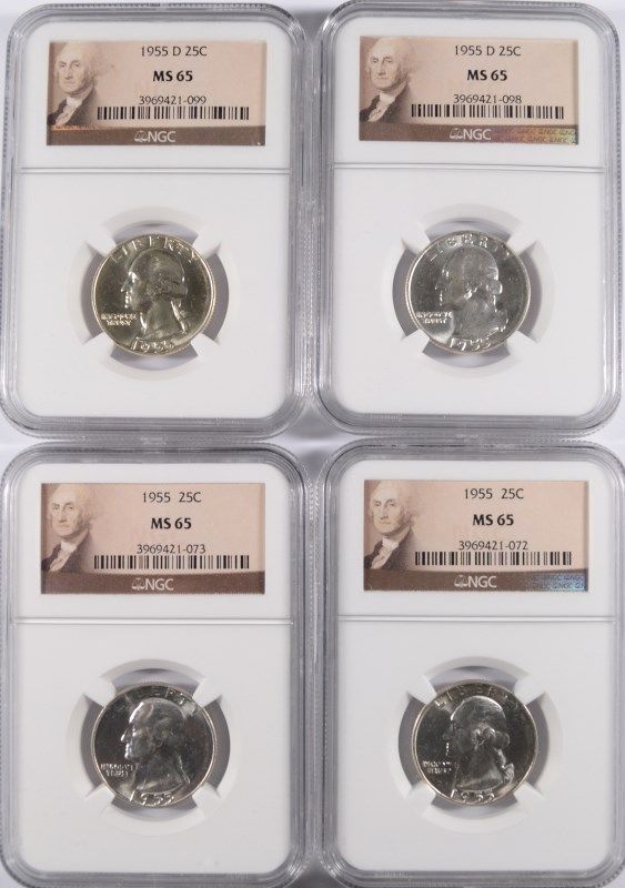 LOT OF ( 4 ) 1955 WASHINGTON QUARTERS, NGC MS-65