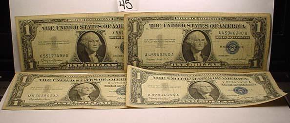 LOT OF 4 1957 SERIES 1 DOLLAR SILVER CERTIFICATES