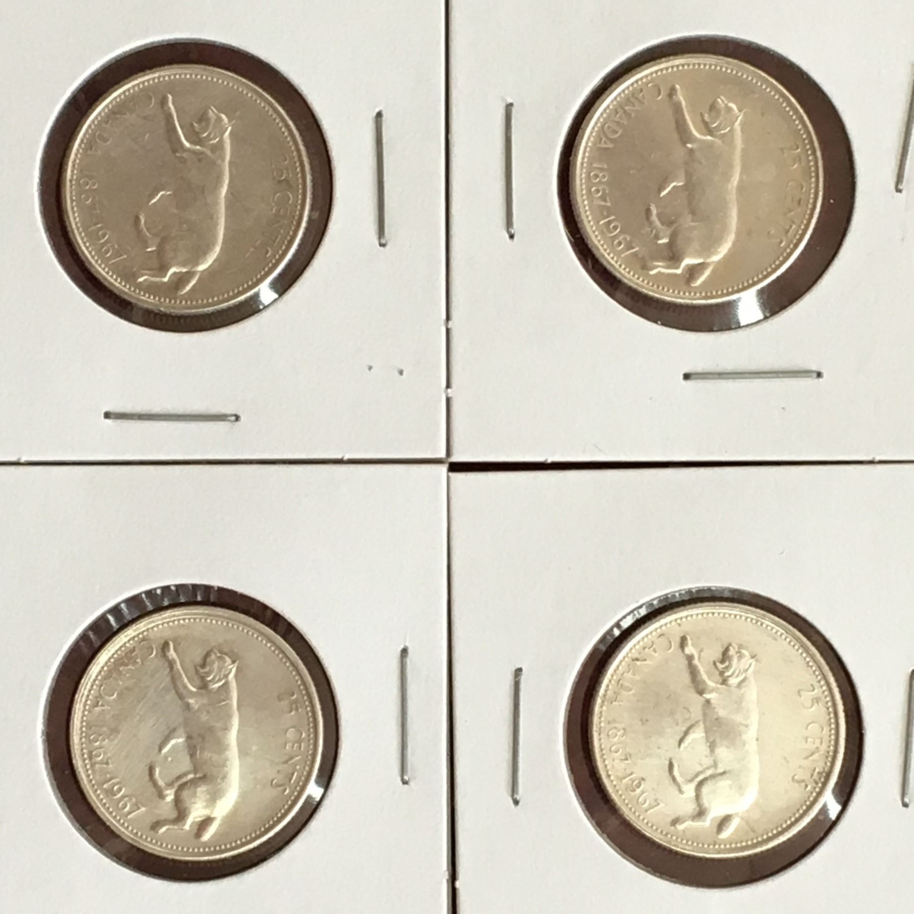 LOT OF 4 1967 CANADA 25 CENT COINS SILVER
