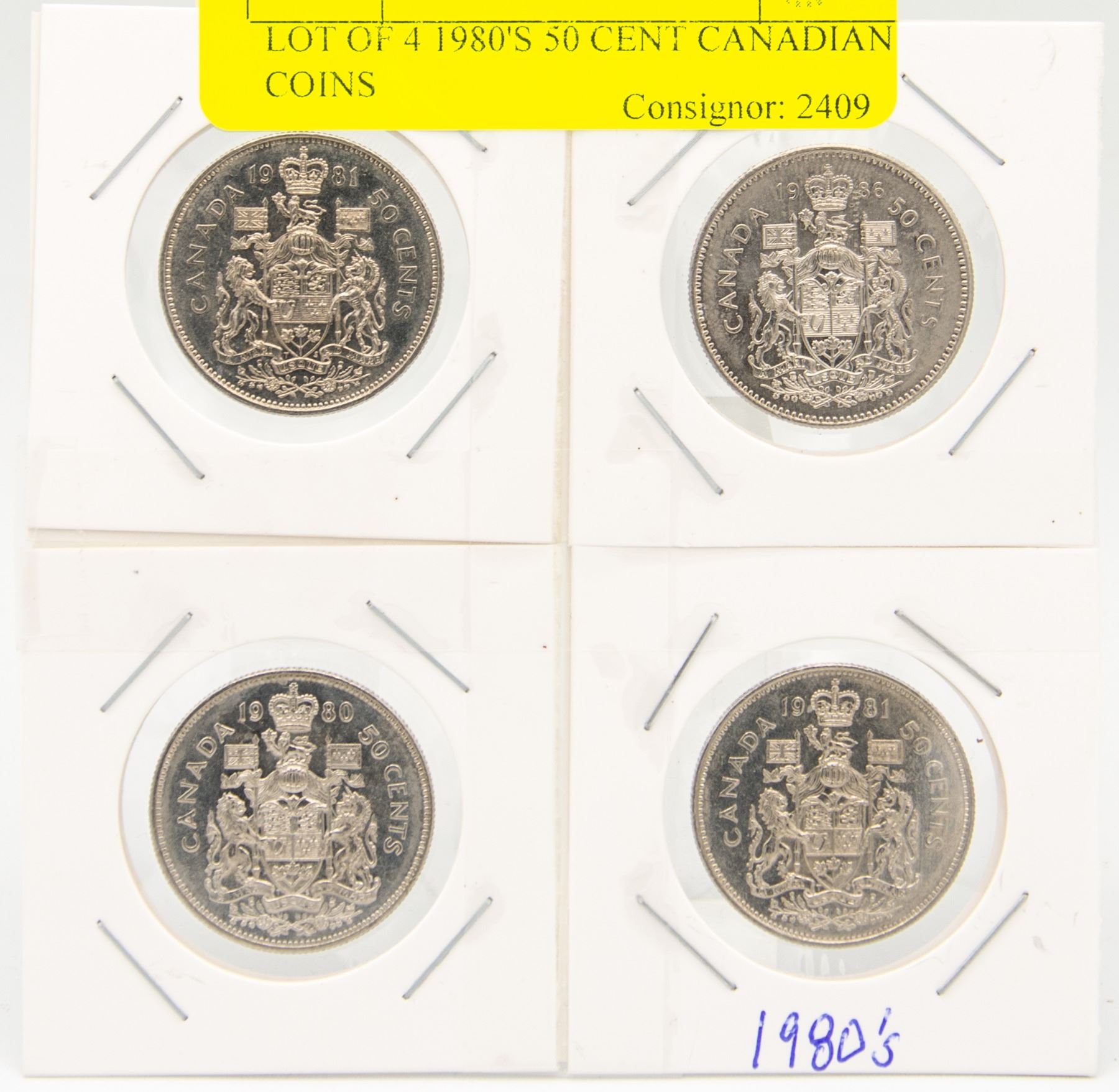 LOT OF 4 1980'S 50 CENT CANADIAN COINS