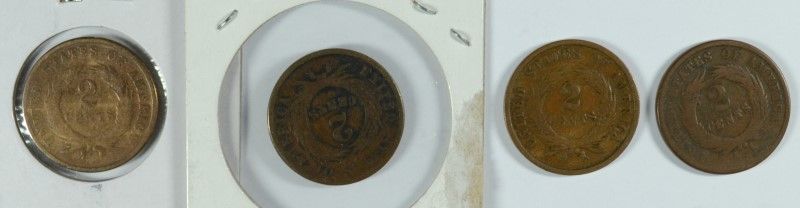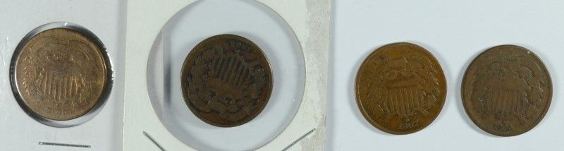 LOT OF ( 4 ) 2 CENT PIECES: 1864, 65, 67 AND 1870 KEY DATE,