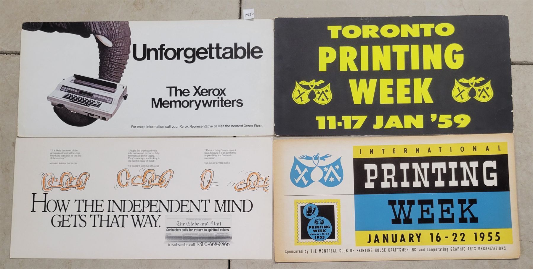 LOT OF 4 - ADVERTISING BOARDS - INCL TORONTO PRINTING WEEK, XEROX MEMORYWRITERS ETC,
