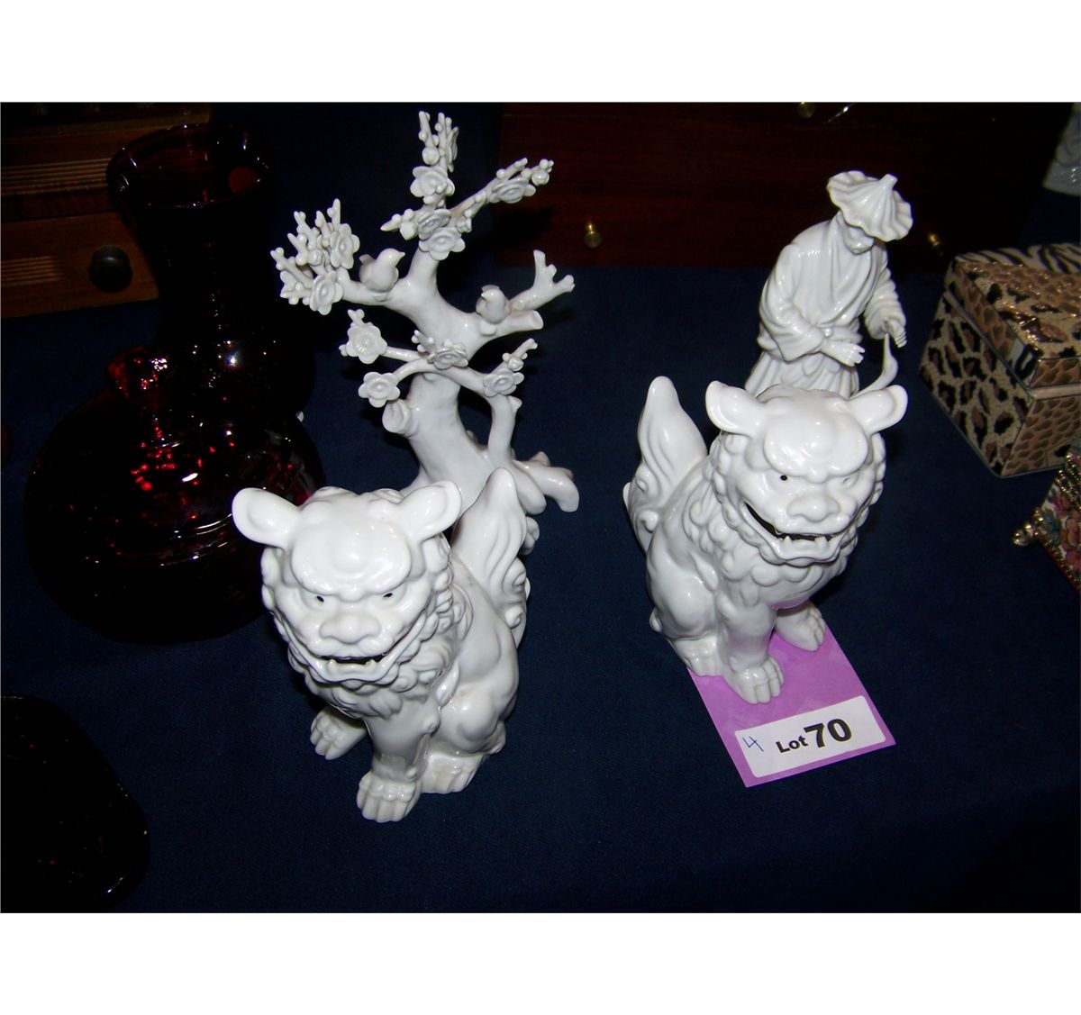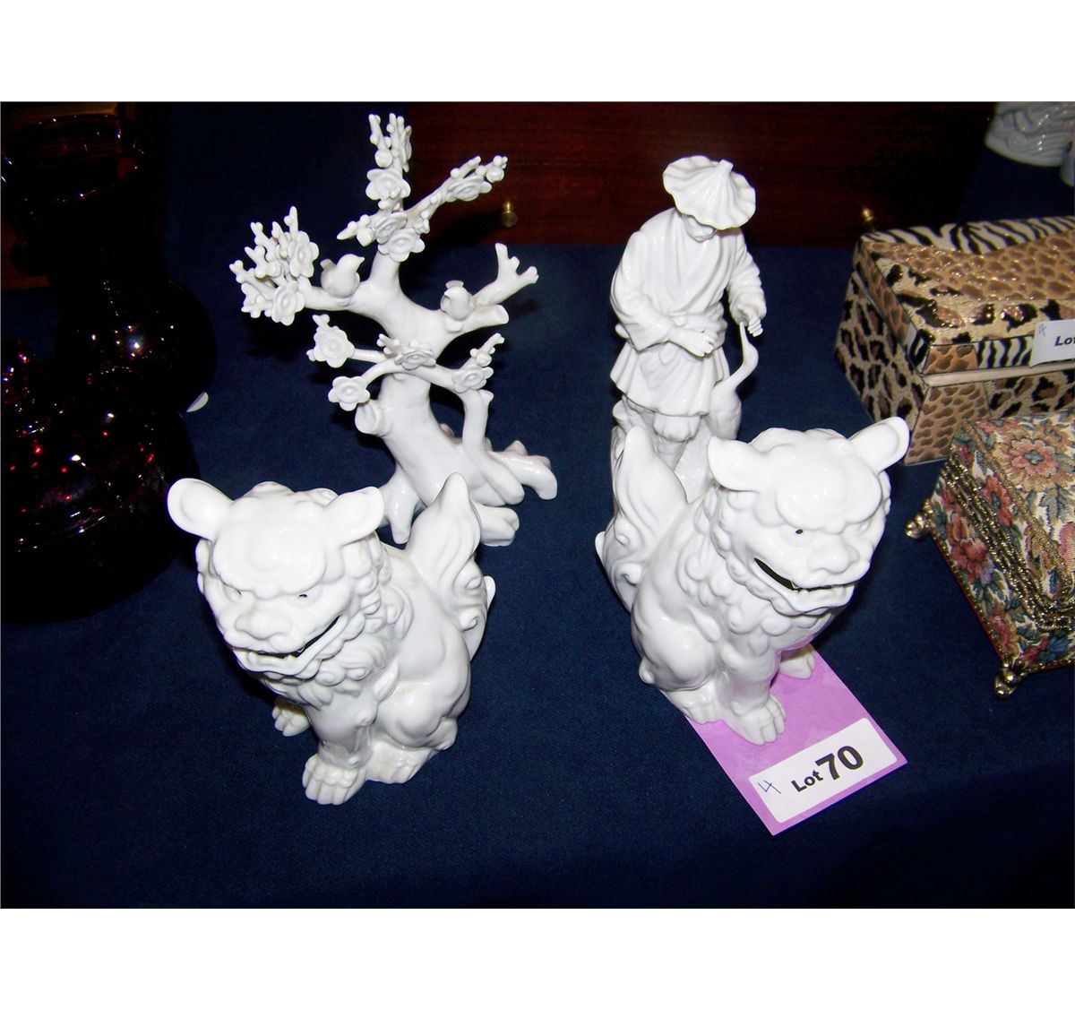 LOT OF (4) ASIAN CERAMIC DECORATIVE FIGURINES, (2) FOO DOGS