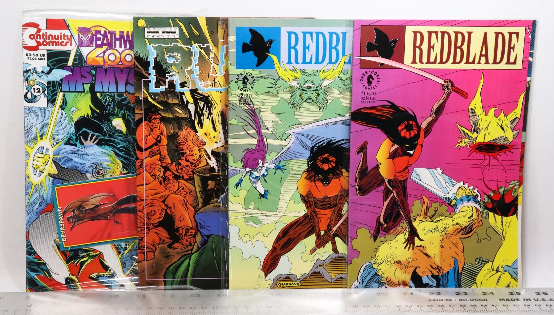 DARK HORSE RED BLADE #1, 2 NOW COMICS RUST #6 CONTINUITY COMICS DEATHWATCH 2000 MS MYSTIC NO.2***ITEM(S) LOCATED IN LETHBRIDGE ALBERTA. SMALL ITEMS ONLY ARE AVAILABLE FOR FREE TRANSPORT TO EDMONTON OFFICE (READ AUCTION DETAILS FOR MORE INFORMATION)