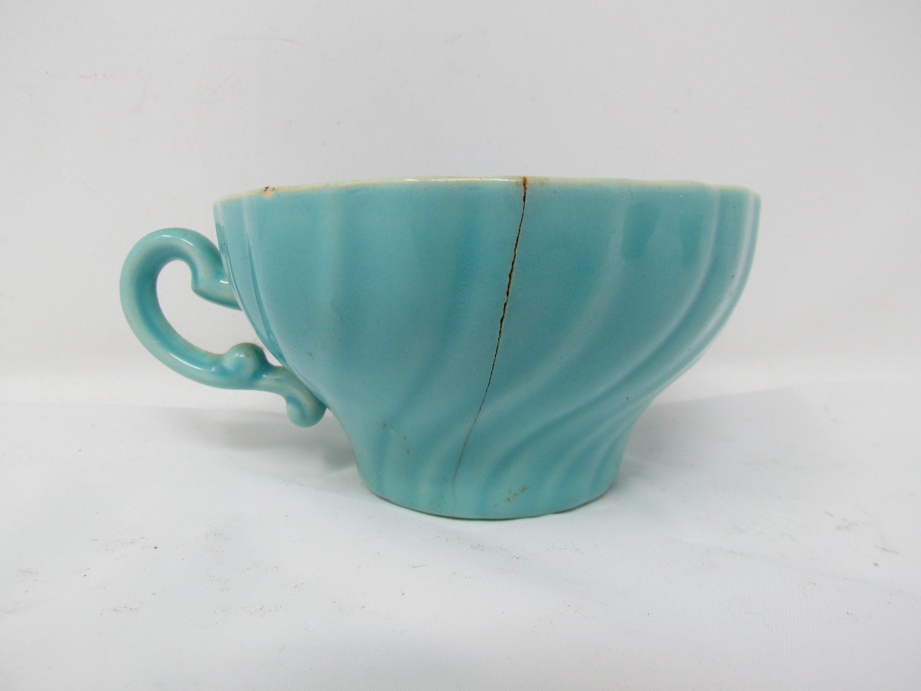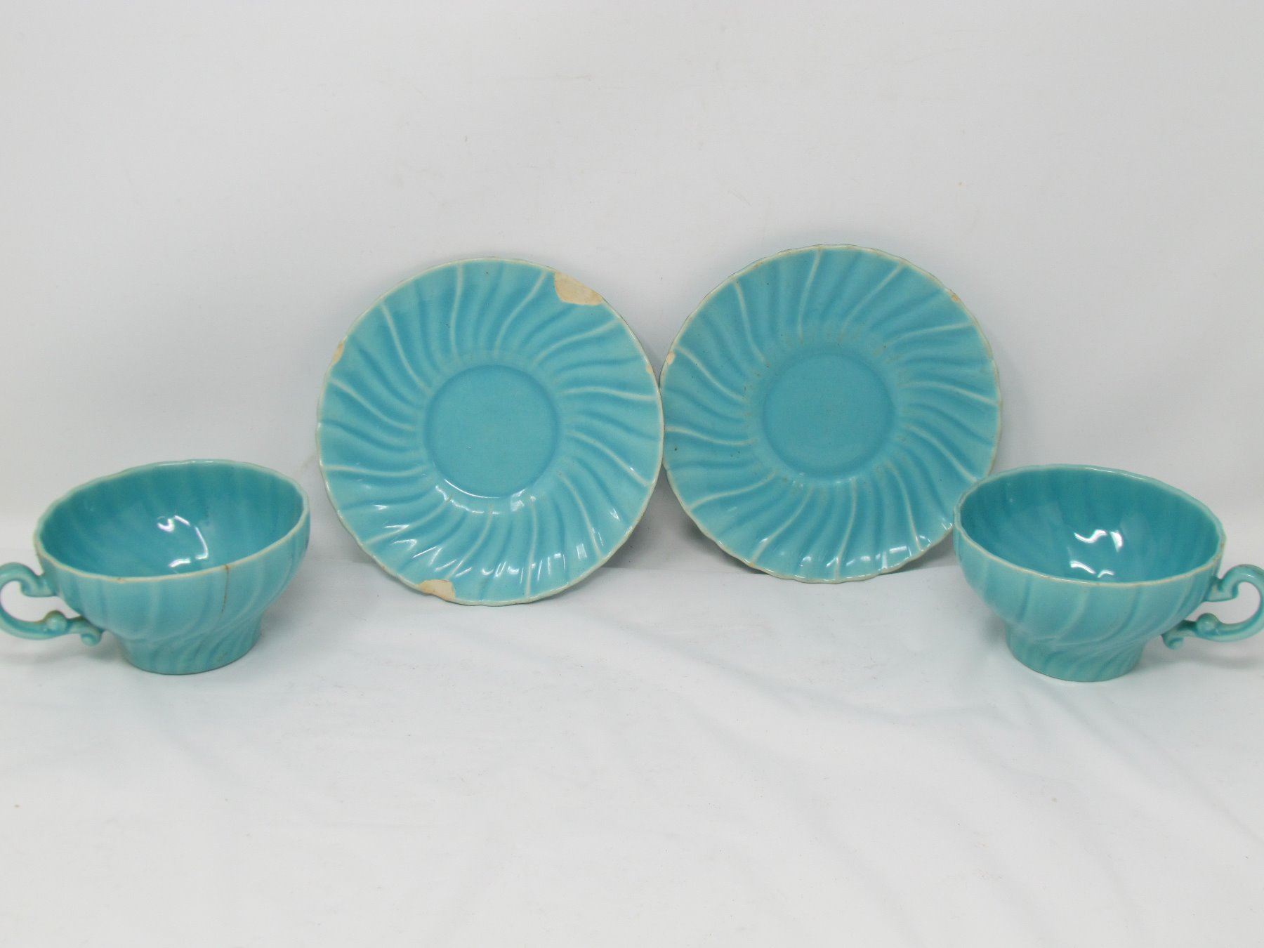 LOT OF 4 ASSORTED SAUCERS, CUPS (SOME CRACKS AND CHIPS IN FINISH)