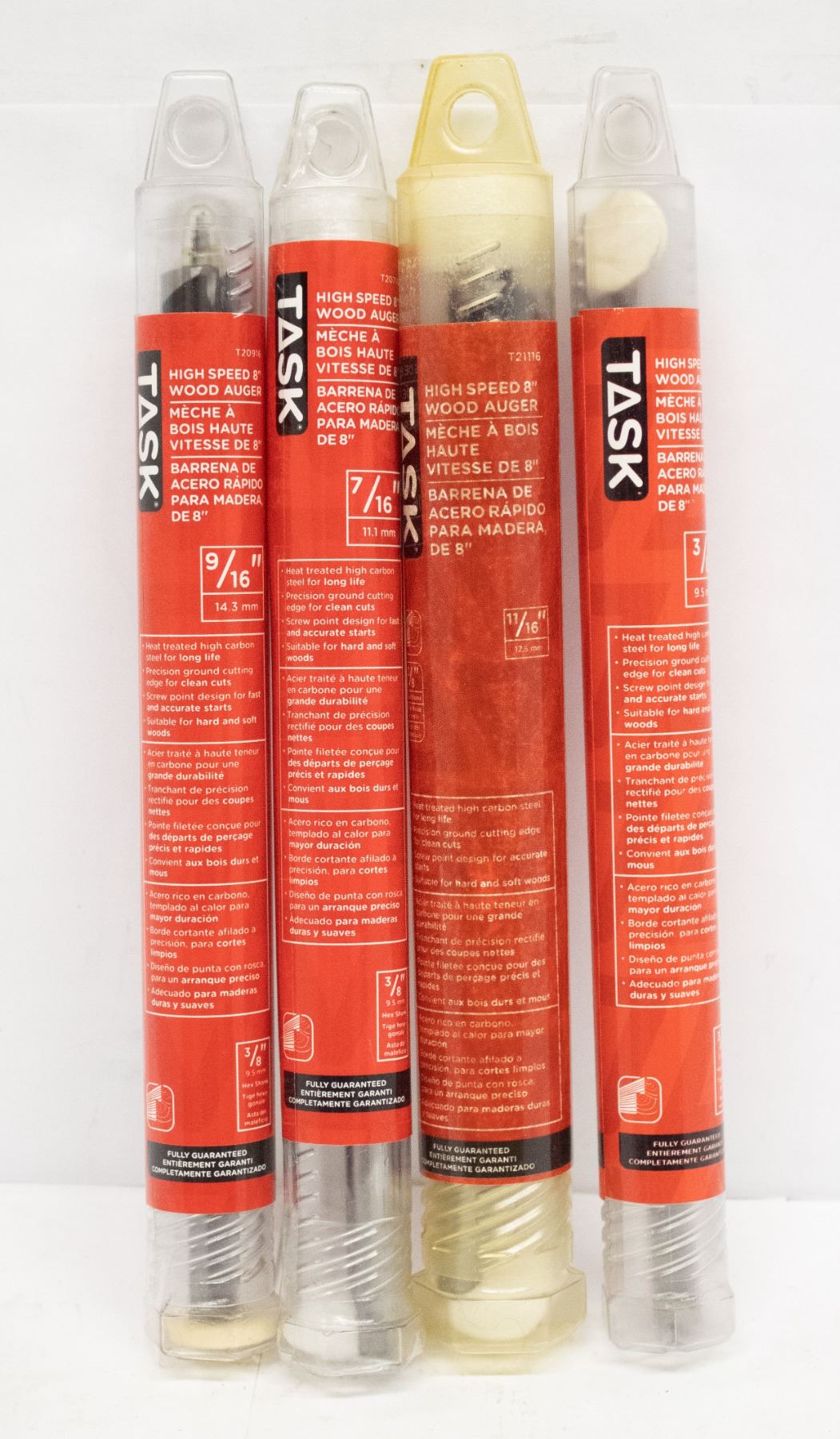 LOT OF 4 ASSORTED TASK HIGH SPEED WOOD AUGER BITS