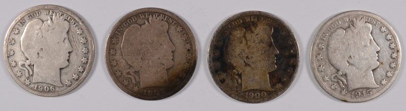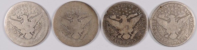 LOT OF 4 BARBER HALF DOLLARS 1900,1906,1907-O,1915-D