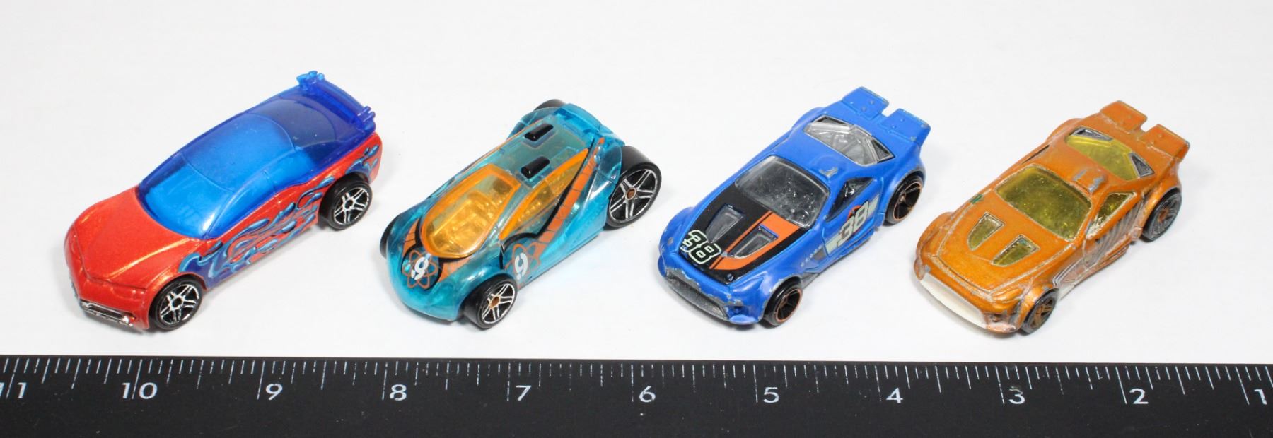 LOT OF 4 BLUE/ORANGE HOTWHEELS