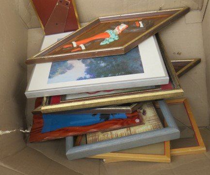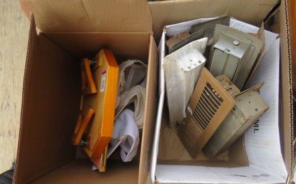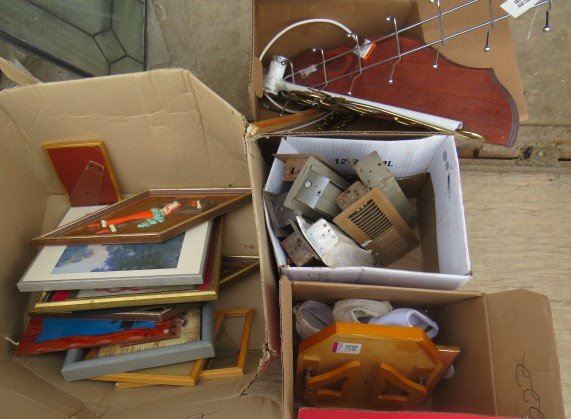 LOT OF 4 BOXES OF MISC HOUSE HOLD ITEMS (VENT COVERS, SMALL PICTURES, FRAMES, COAT RACKS, ETC)