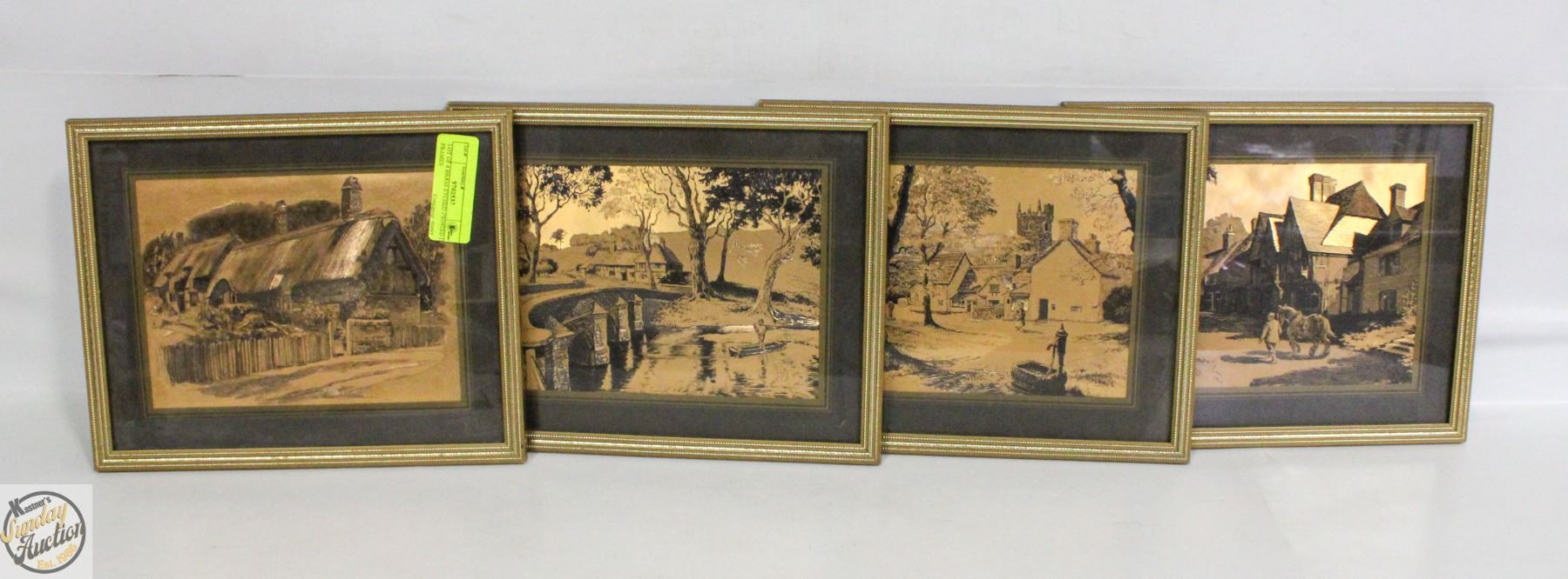 LOT OF 4 BRASS ETCHED PRINTED IN FRAMES