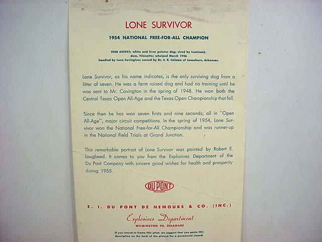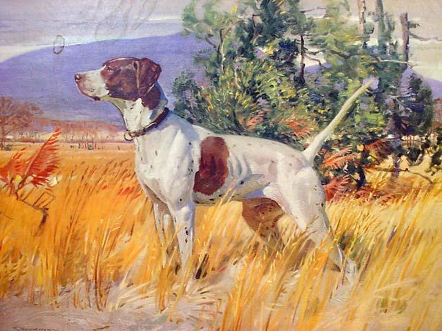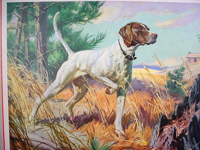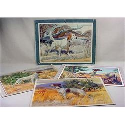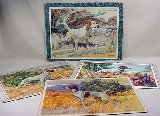 LOT OF 4 C. 1950'S HUNTING DOG LITHO PRINTS BY DUPONT - Each approx. 15" x 12"
