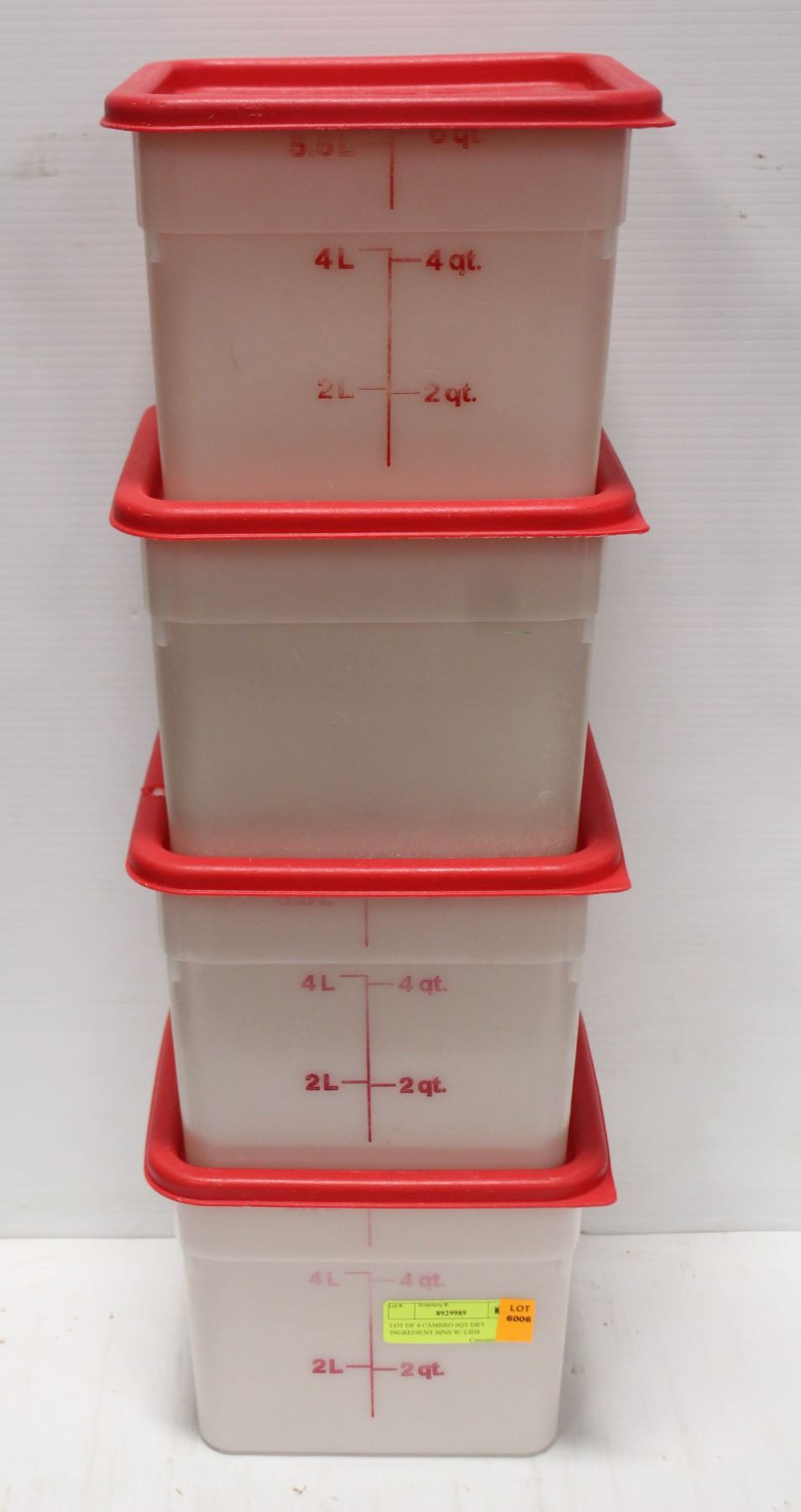 LOT OF 4 CAMBRO 6QT DRY INGREDIENT BINS W/ LIDS