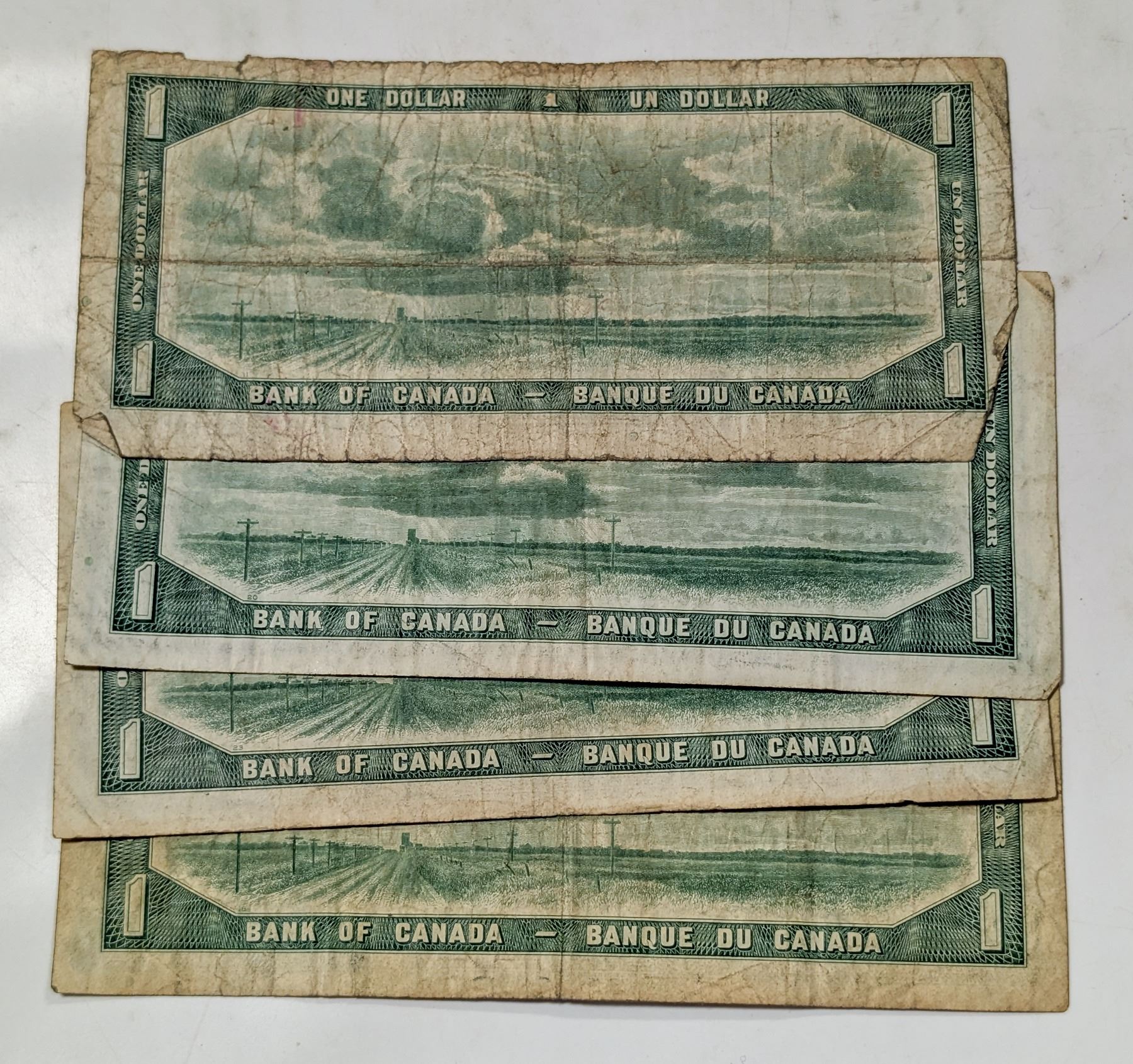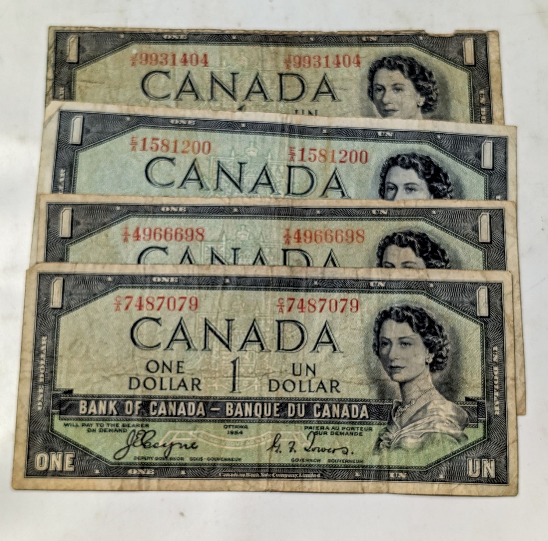LOT OF 4 CANADA 1954 DEVIL’S FACE $1 BANKNOTES