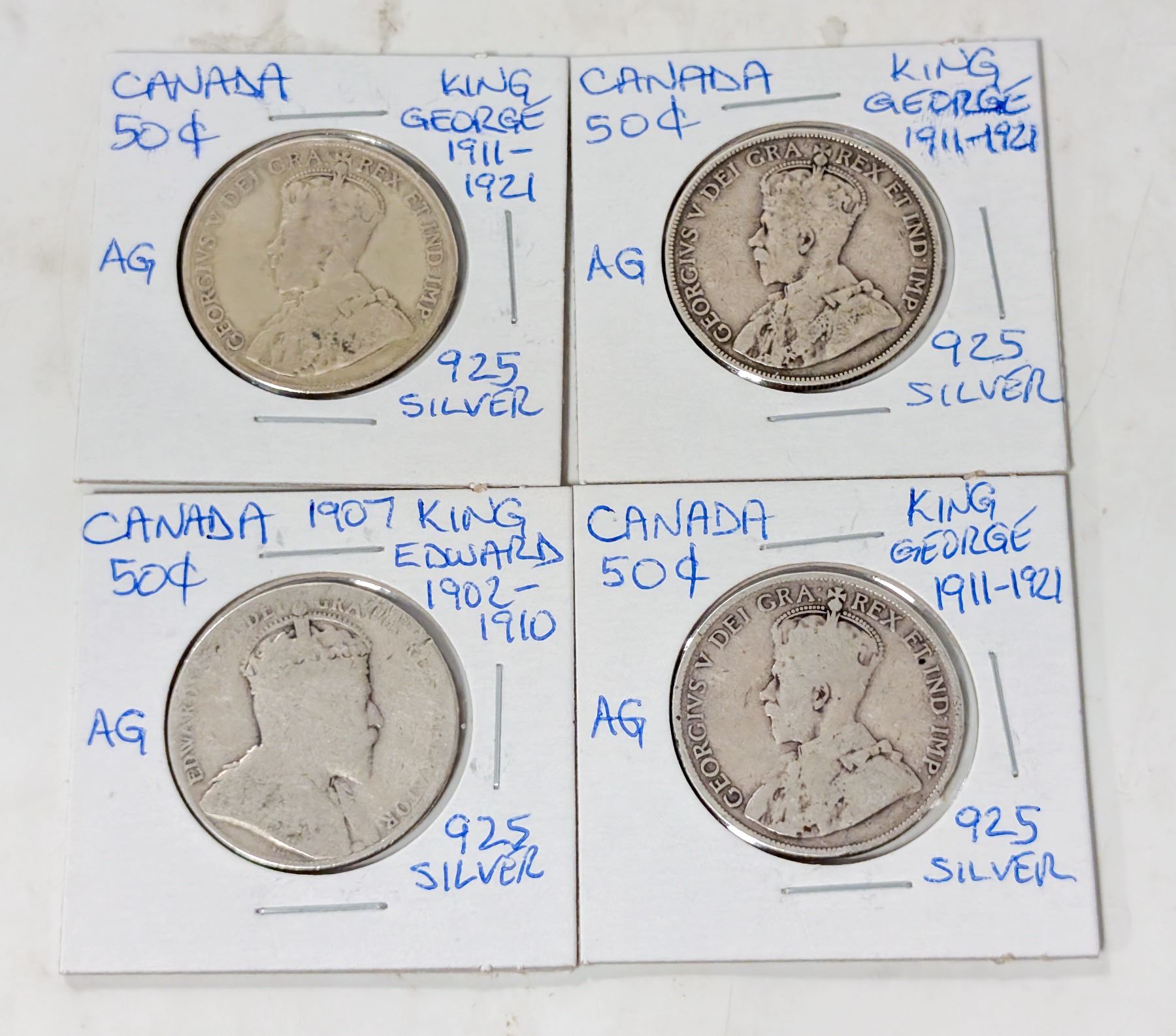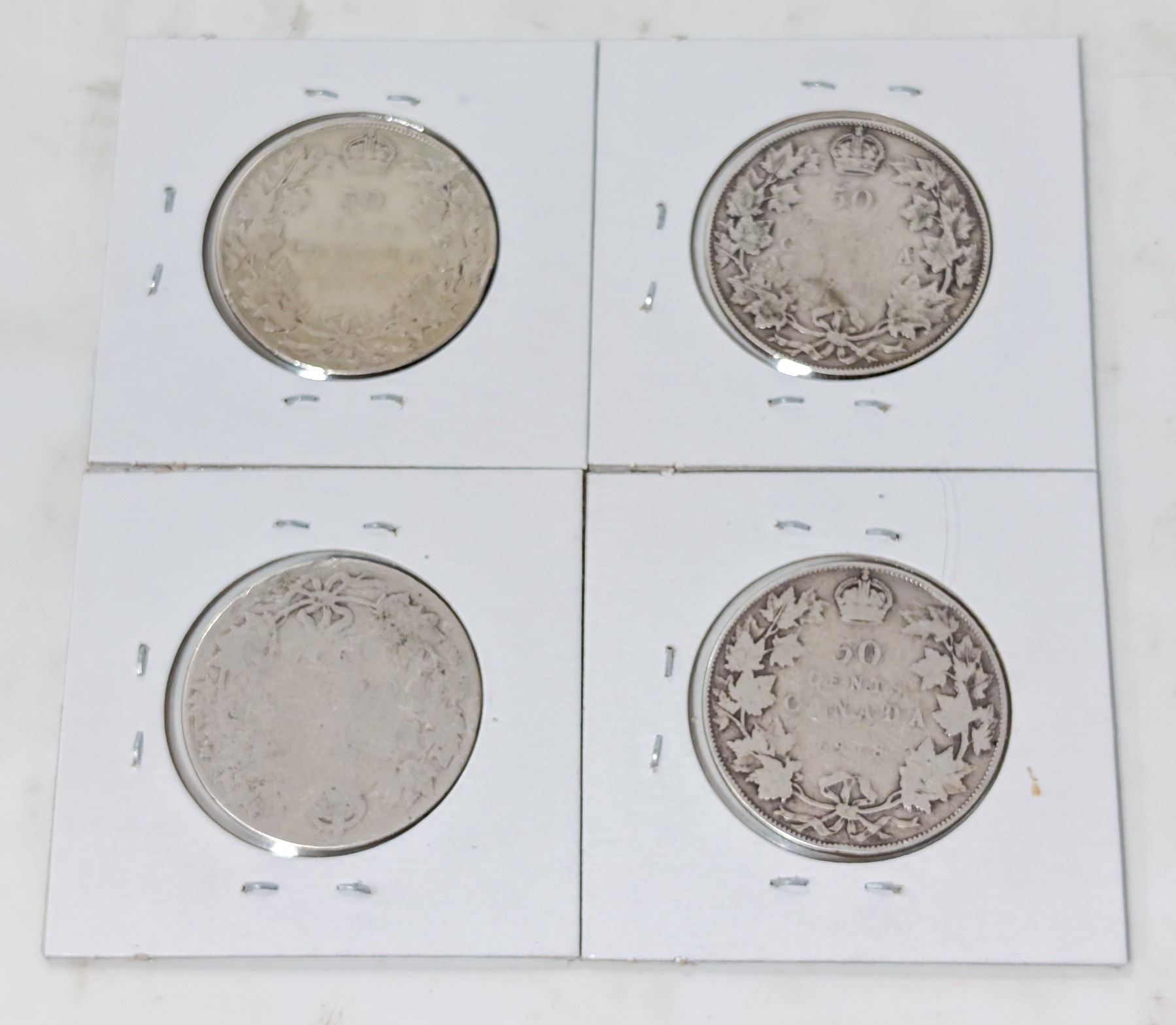 LOT OF 4 CANADA 50 CENT SILVER COINS ROUGH