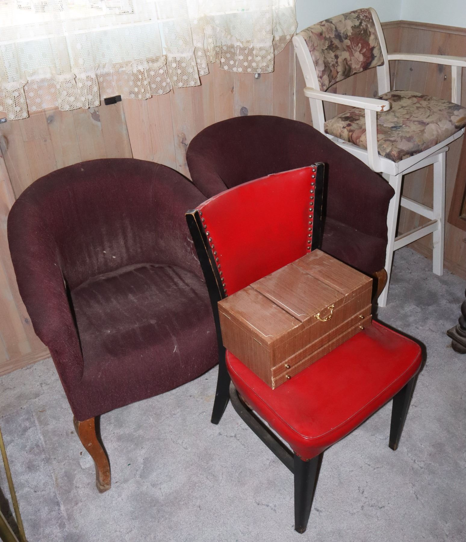 LOT OF 4 CHAIRS AND JEWELRY BOX