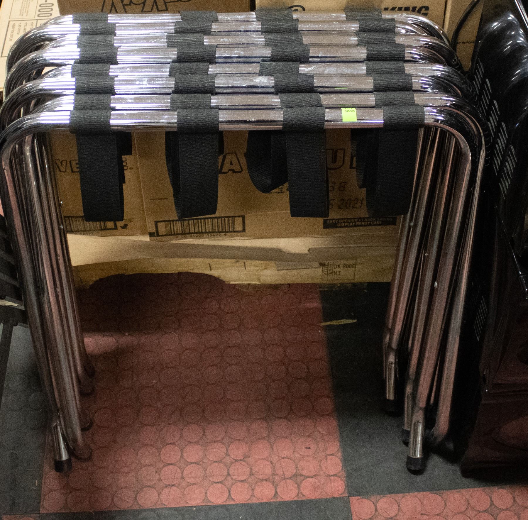 LOT OF 4 CHROME LUGGAGE STANDS