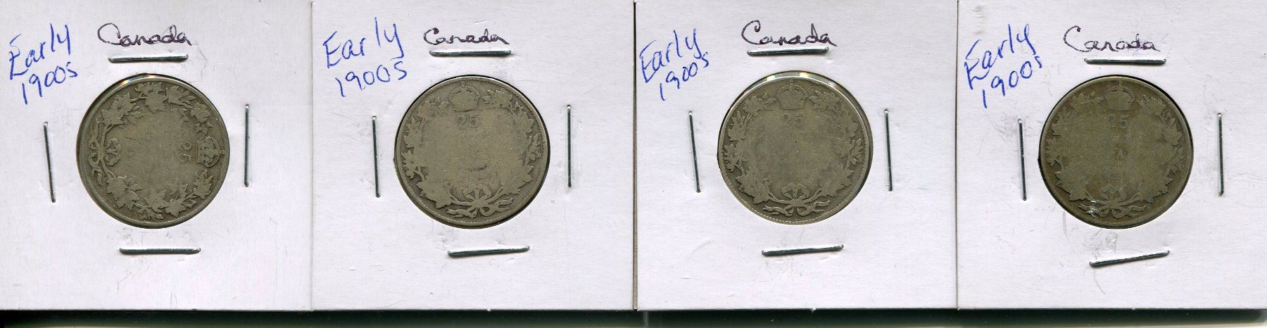 LOT OF 4 CNDN QUARTERS *YEARS UNKNOWN*