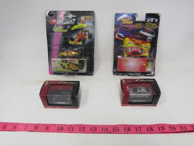 LOT OF 4 COLLECTOR CARS (IN BOXES) *OPEL VECTRA GTS, F12 DIE CAST WITH METAL BOX, ETC*