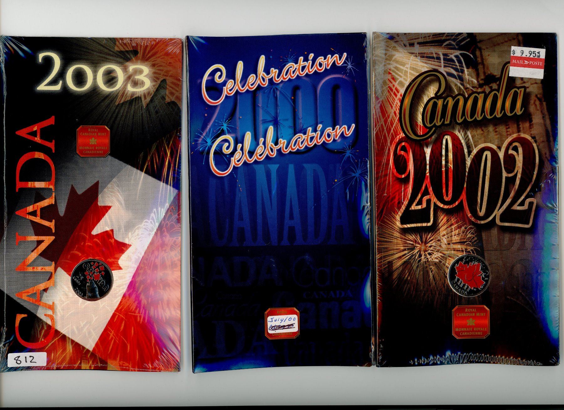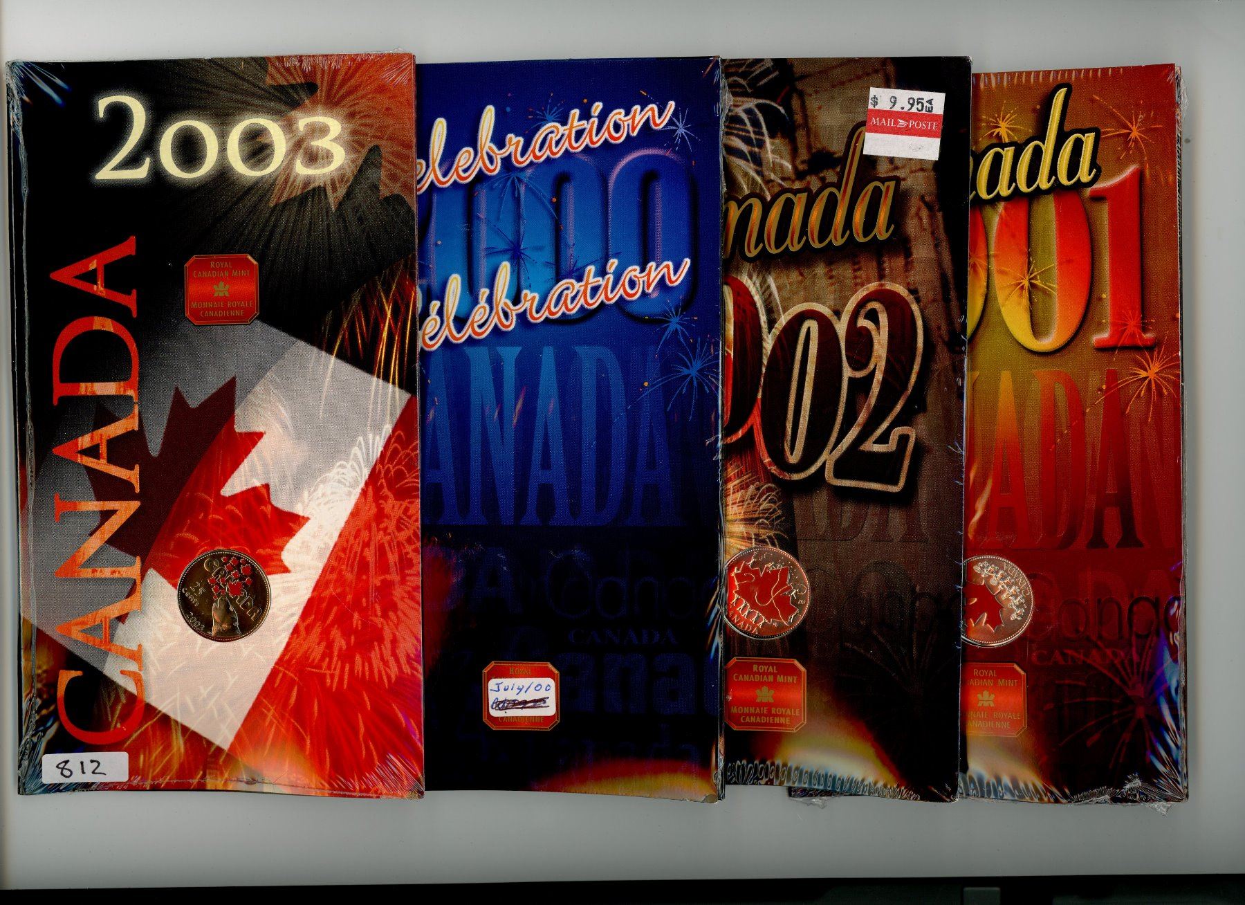 LOT OF 4 COLOURIZED 25 CENTS (2000 CELEBRATION, 2001 CANADA, 2002 CANADA, 2003 CANADA)