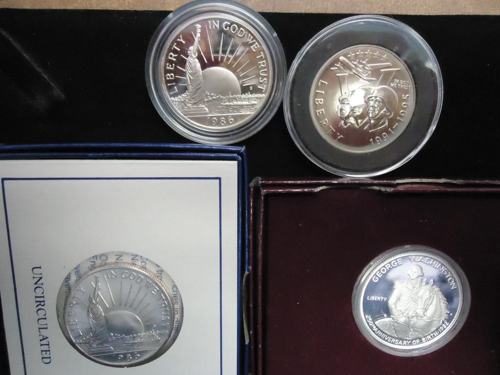 1982-S WASHINGTON COMMEMORATIVE HALF DOLLAR PROOF, 1986-D STATUE OF LIBERTY HALF DOLLAR UNC, 1986-S STATUE OF LIBERTY HALF DOLLAR PROOF AND 1991-95-P WWII HALF DOLLAR UNC