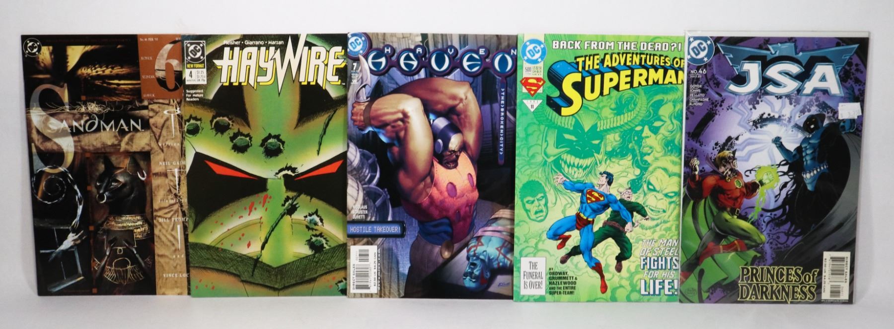 THE ADVENTURES OF SUPERMAN #500 JSA NO.46 HAVEN #7 HAYWIRE #4 SANDMAN #6***ITEM(S) LOCATED IN LETHBRIDGE ALBERTA. TRANSPORT TO EDMONTON SERVICE WILL BE REDUCED / CANCELED UNTIL FURTHER NOTICE, CANADA POST SHIPPING IS AVAILABLE. WE CAN HOLD JEWELRY, CURRENCY, COMIC BOOK, VIDEO GAME PURCHASES UNTIL A TRANSPORT VEHICLE IS AVAILA
