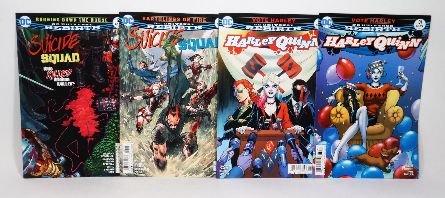 SUICIDE SQUAD #12, 17 HARLEY QUINN #30, 31***ITEM(S) LOCATED IN LETHBRIDGE ALBERTA. SMALL ITEMS ONLY ARE AVAILABLE FOR FREE TRANSPORT TO EDMONTON OFFICE (READ AUCTION DETAILS FOR MORE INFORMATION)