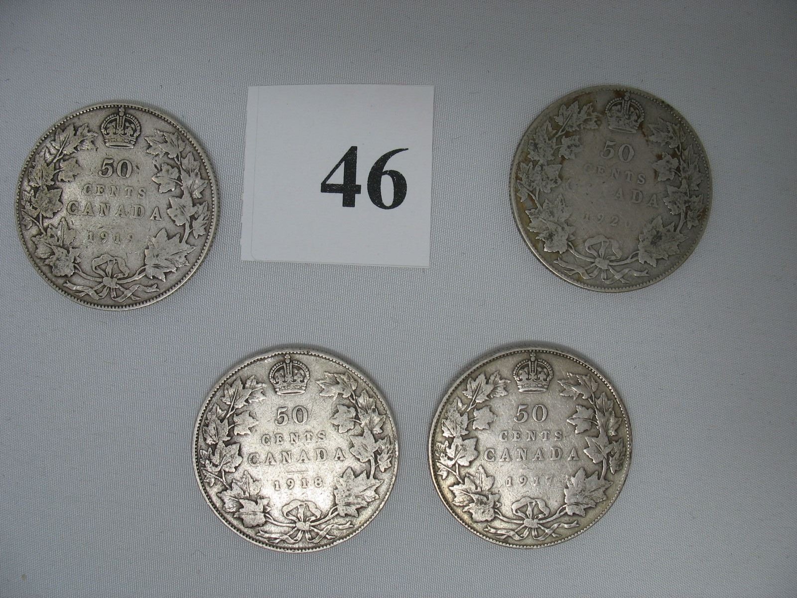 LOT OF 4 DIFFERENT DATES - SILVER CANADIAN HALF DOLLARS (1917, 1918, 1919,1920)