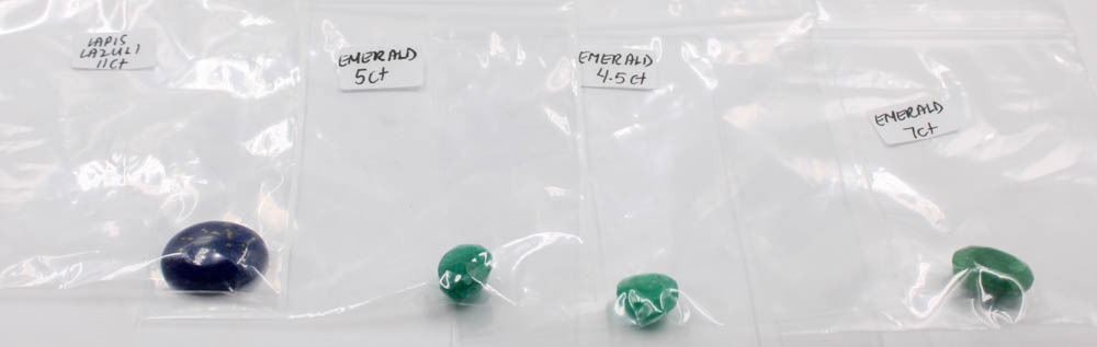 LOT OF 4 EMERALDS AND LAPIS LAZULI GEMSTONES