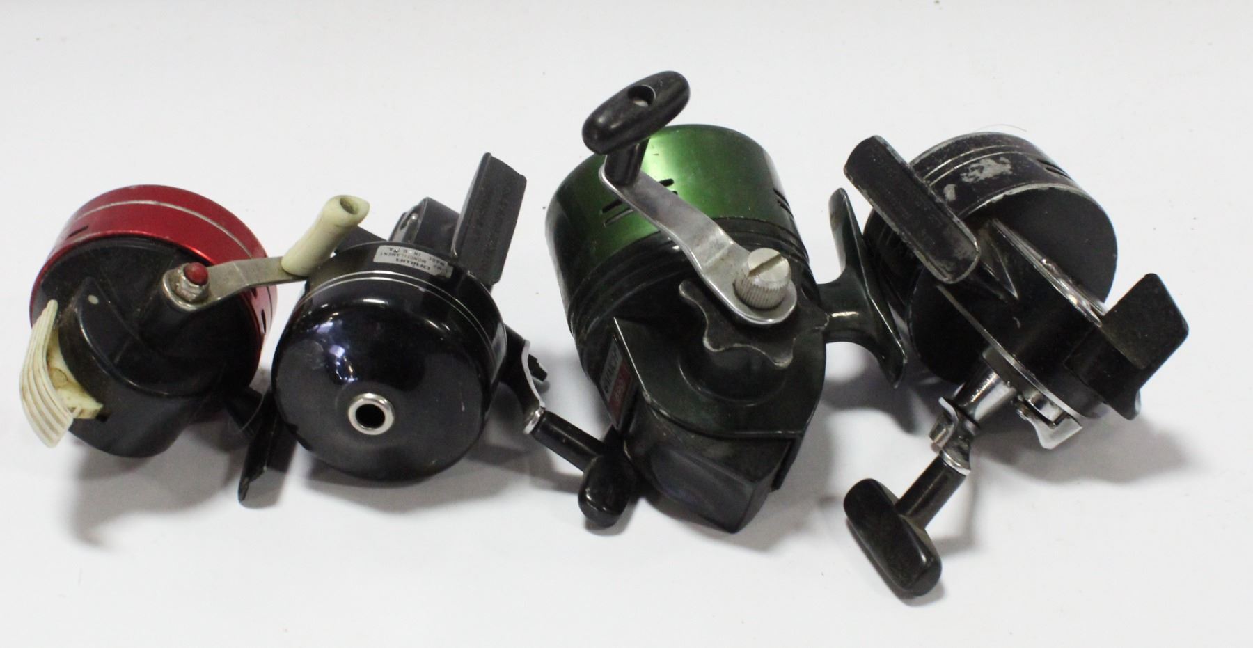 LOT OF 4 ENCLOSED FISHING REELS, INCLUDES BRANDS