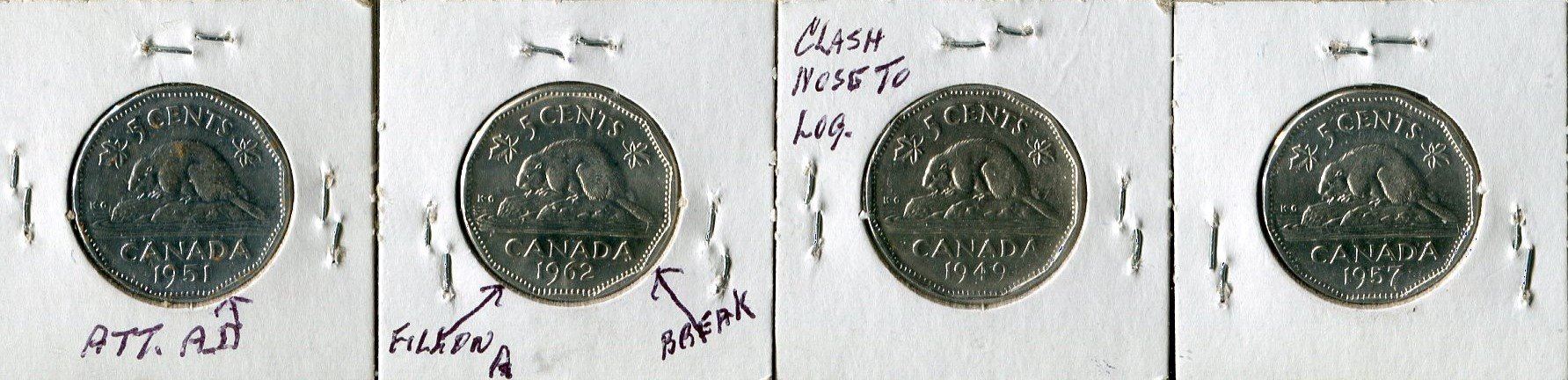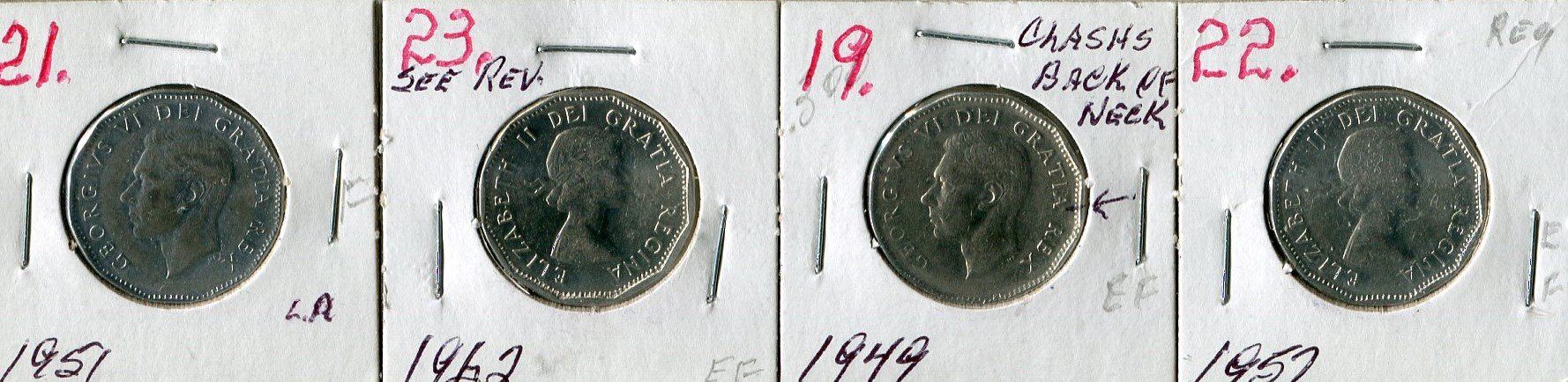 LOT OF 4 FIVE CENT COINS (CANADA) *1951, 1962, 1949, 1957*